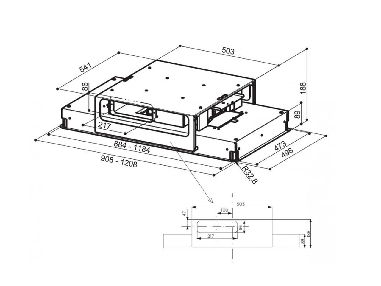 Určen k instalaci nad varnou zónou umístěnou v kuchyňském ostrůvku
