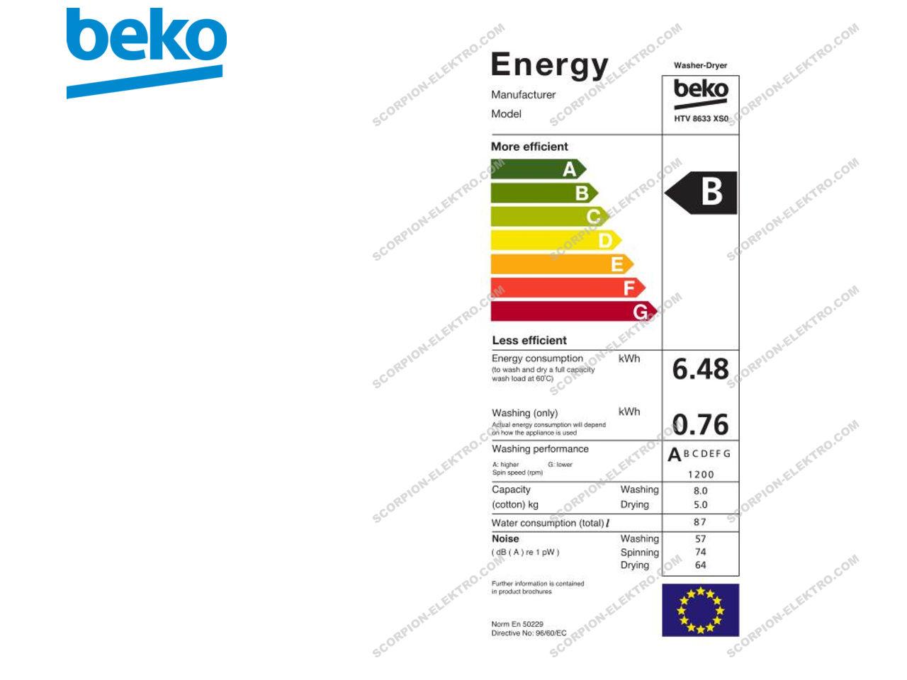 Předem plněná pračka s kondenzační sušičkou BEKO HTV 8633 XS0 na 8 kg praní prádla a 5 kg sušení. Patří do energetické třídy B a je vybavena programem BabyProtect+. Celý popis