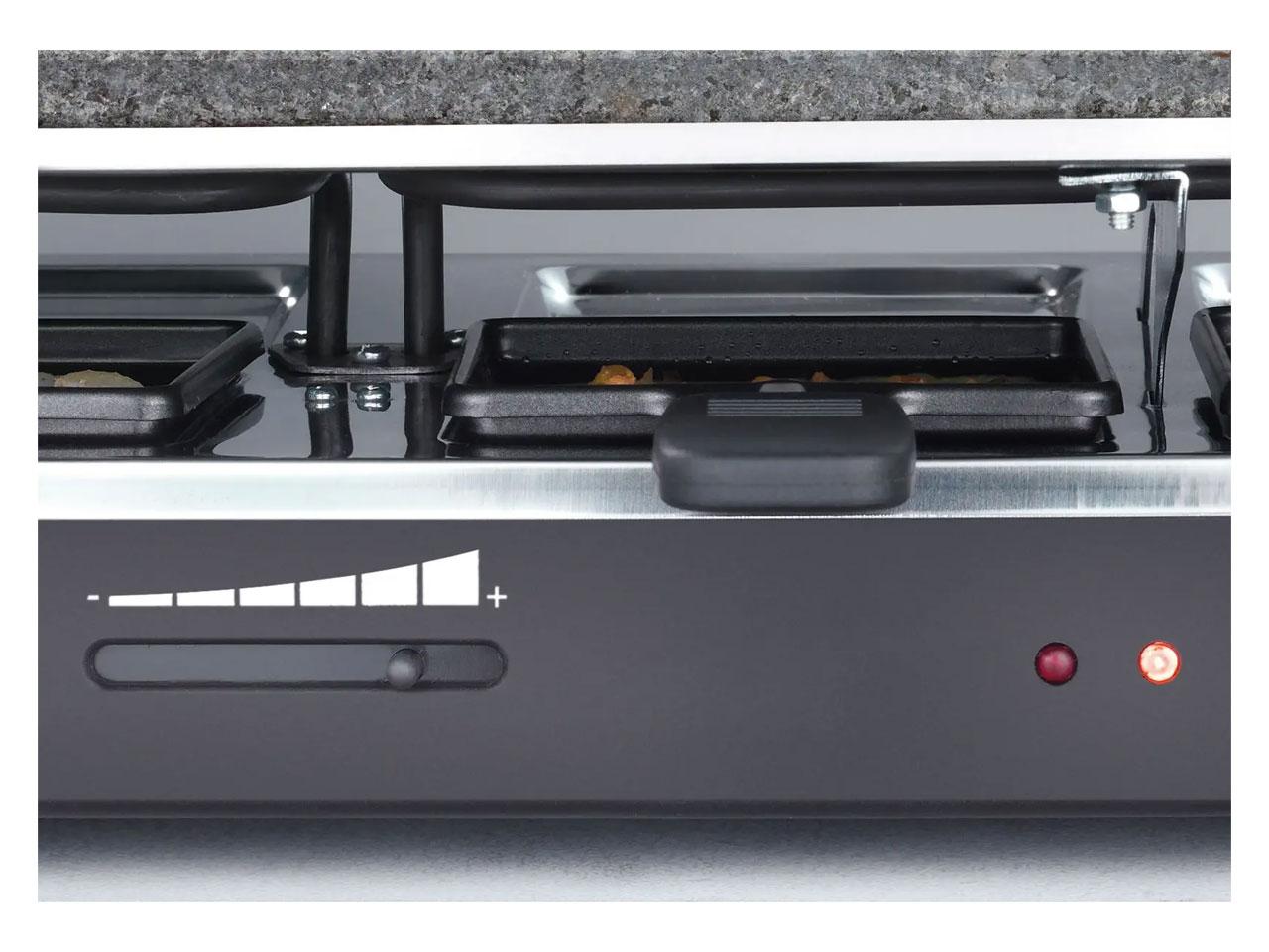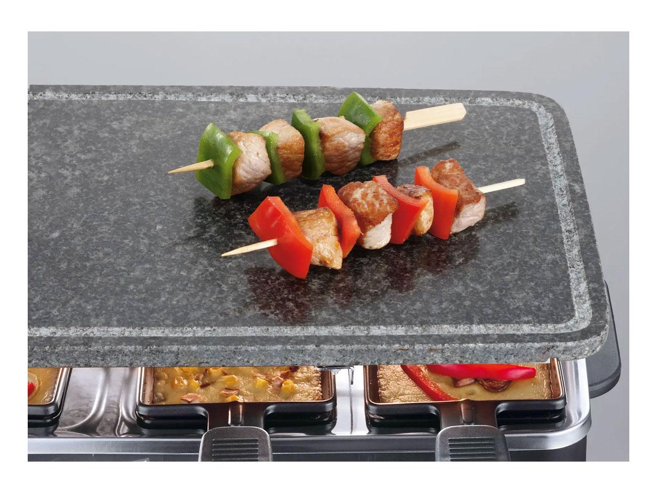 Dejte si pravé raclette, nebo si zapečte vlastní malé chuťovky - dole lopatky na raclette, nahoře grilovací plocha. Gril je velmi výkonný a snadno se udržuje díky nepřilnavé ploše, takže umožňuje i vaření bez tuku.