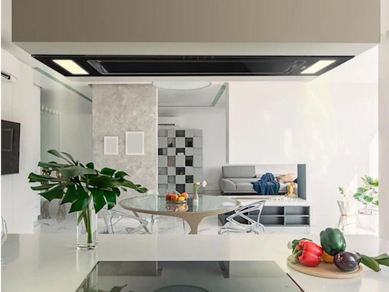 Flexibilní: 90cm digestoř s provozem odvádění odpadního vzduchu pro použití jako stropní digestoř nebo digestoř na zabudování