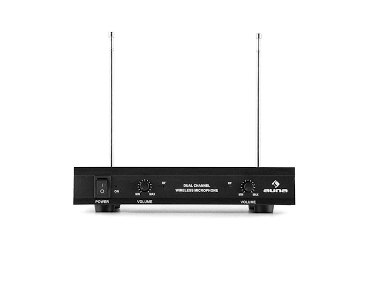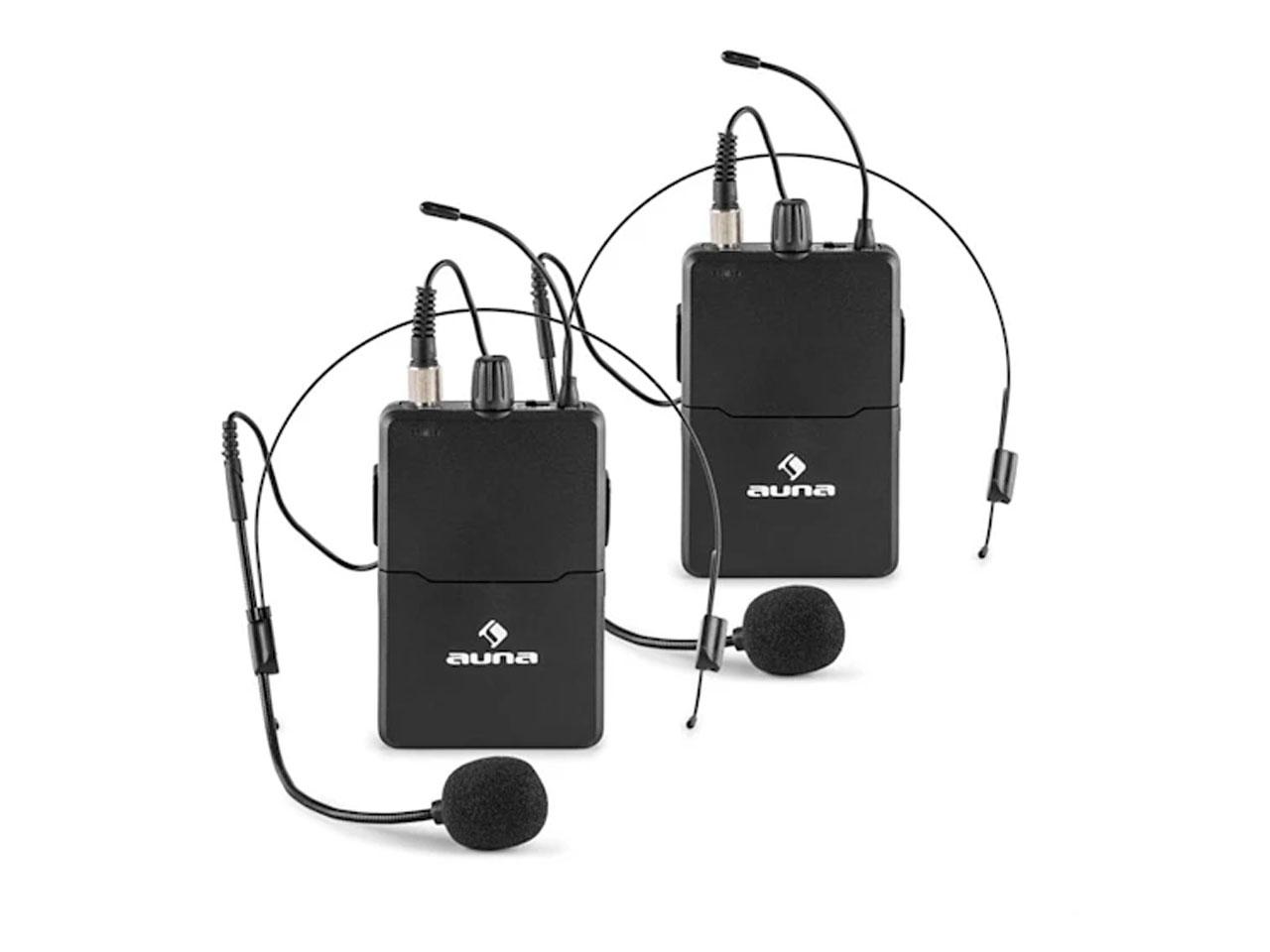 Bezdrátový systém s sebou přináší dva headset mikrofony, které v celém rozsahu zachytí akustický repertoár mistrovských zpěváků, řečníků a tržních obchodníků a zlepšují tak performativní dojem. Díky VHF frekvenčnímu pásmu dosahuje Auna VHF-2-HS systém akusticky i do rozsáhlejších oblastí s poloměrem až do 50 metrů.