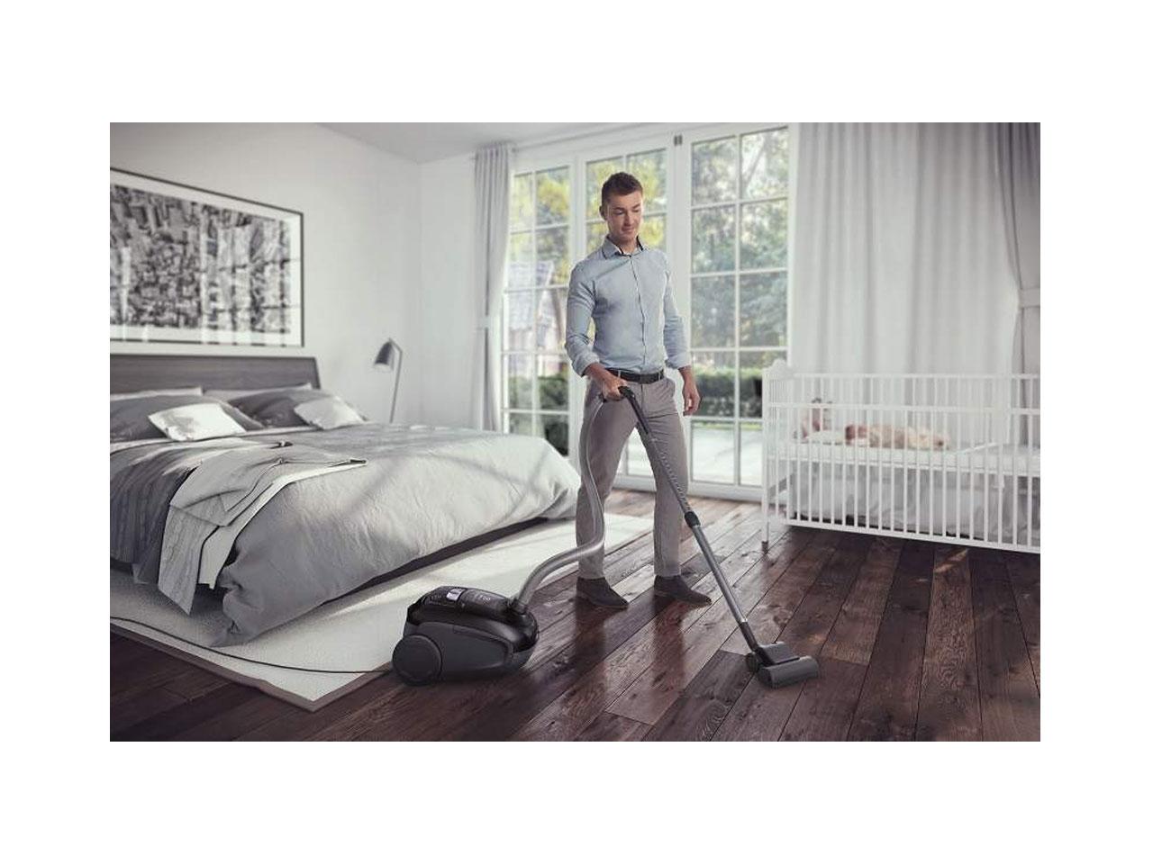Mezi další přednosti bez pochyby patří funkce soft start, neboli pomalého náběhu motoru, při němž nedochází k zatížení elektrické sítě. Každý také jistě ocení omyvatelný hygienický filtr 12, jenž je maximálně účinný a zbavuje vzduch nečistot. Výhodná je také možnost mechanicky regulovat sací výkon v závislosti na typu povrchu.