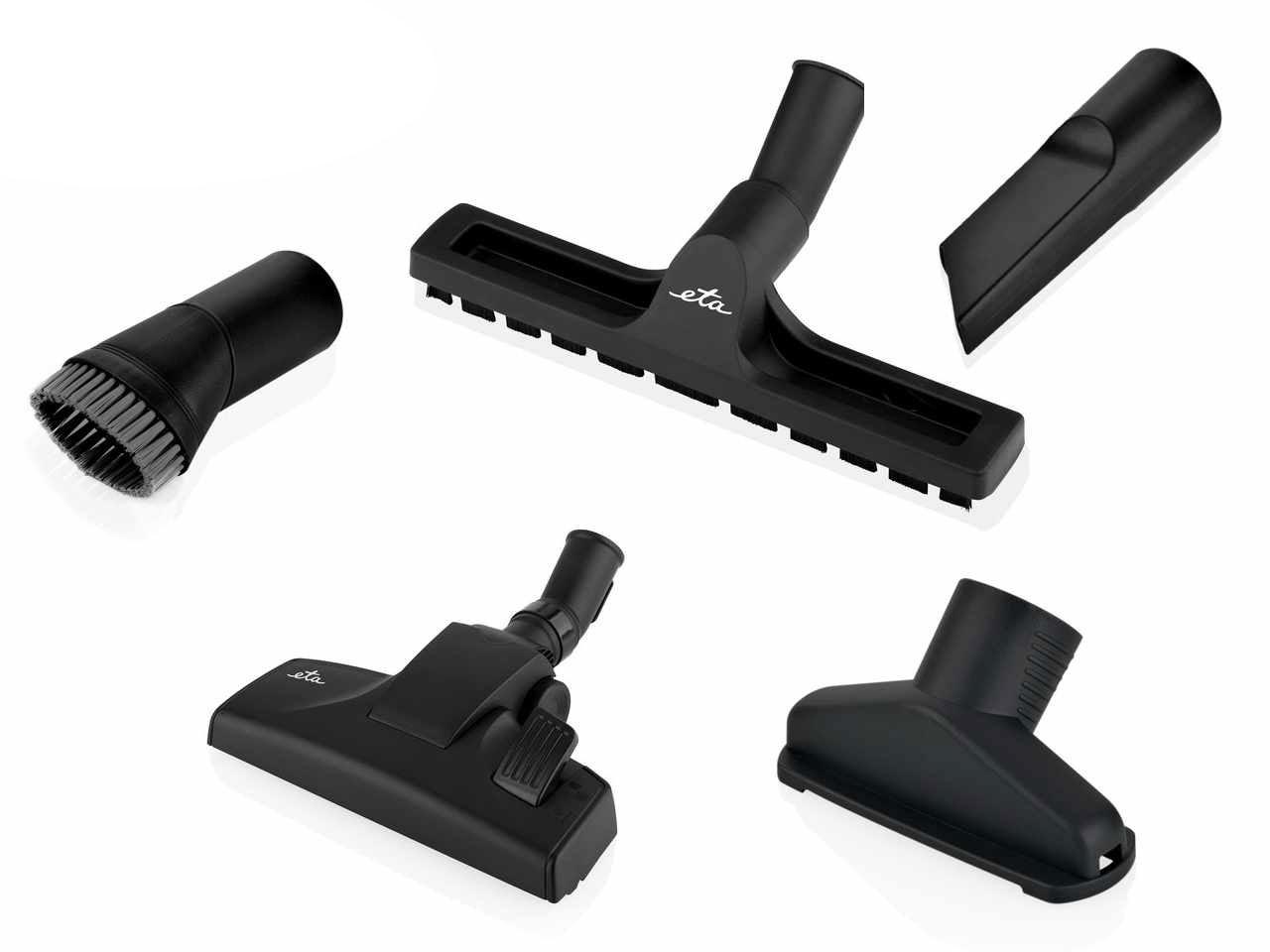 Mezi příslušenství vysavače patří univerzální podlahová hubice s výsuvným kartáčem, parketová hubice vhodná na tvrdé podlahy jako je plovoucí podlaha, dlažba, linoleum, parkety apod. Dále v příslušenství najdete polštářovou hubici na šetrné vysávání měkkých textilních povrchů (polštáře nebo čalounění), štěrbinovou hubici, se kterou zvládnete uklidit i v úzkých a těžko dostupných místech. Kartáček s jemnými štětinkami vám pomůže uklidit na místech, které potřebujete šetrně zbavit prachu – nejčastěji na nábytku, zdech či obrazech.
