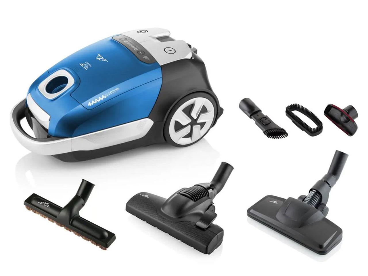 Stylový sáčkový vysavač ETA Adagio v moderním modro-černo-stříbrném provedení se řadí do kategorie 4 AAAA (A – energetická třída, A – třída na kobercích, A – třída na podlahách, A – třída na filtraci). Vysavač disponuje vysokým výkonem, který můžete snadno regulovat, a současně nízkým příkonem pro úsporu elektrické energie díky ECO motoru. Celý popis