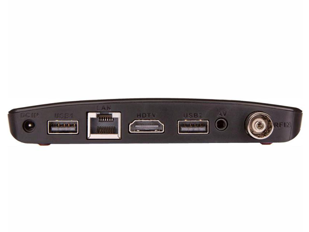 Propojení s vaším televizorem je realizováno skrze HDMI i klasické AV rozhraní pro starší TV a součástí balení je i dálkový ovladač (podporována je ale i technologie CEC pro ovládání televizoru a centra jedním jediným ovladačem). Kromě toho má ale zařízení na těle i ethernet port, který doplňuje možnost připojení k internetu pomocí Wi-Fi, a dvě USB například pro připojení flashdisku.