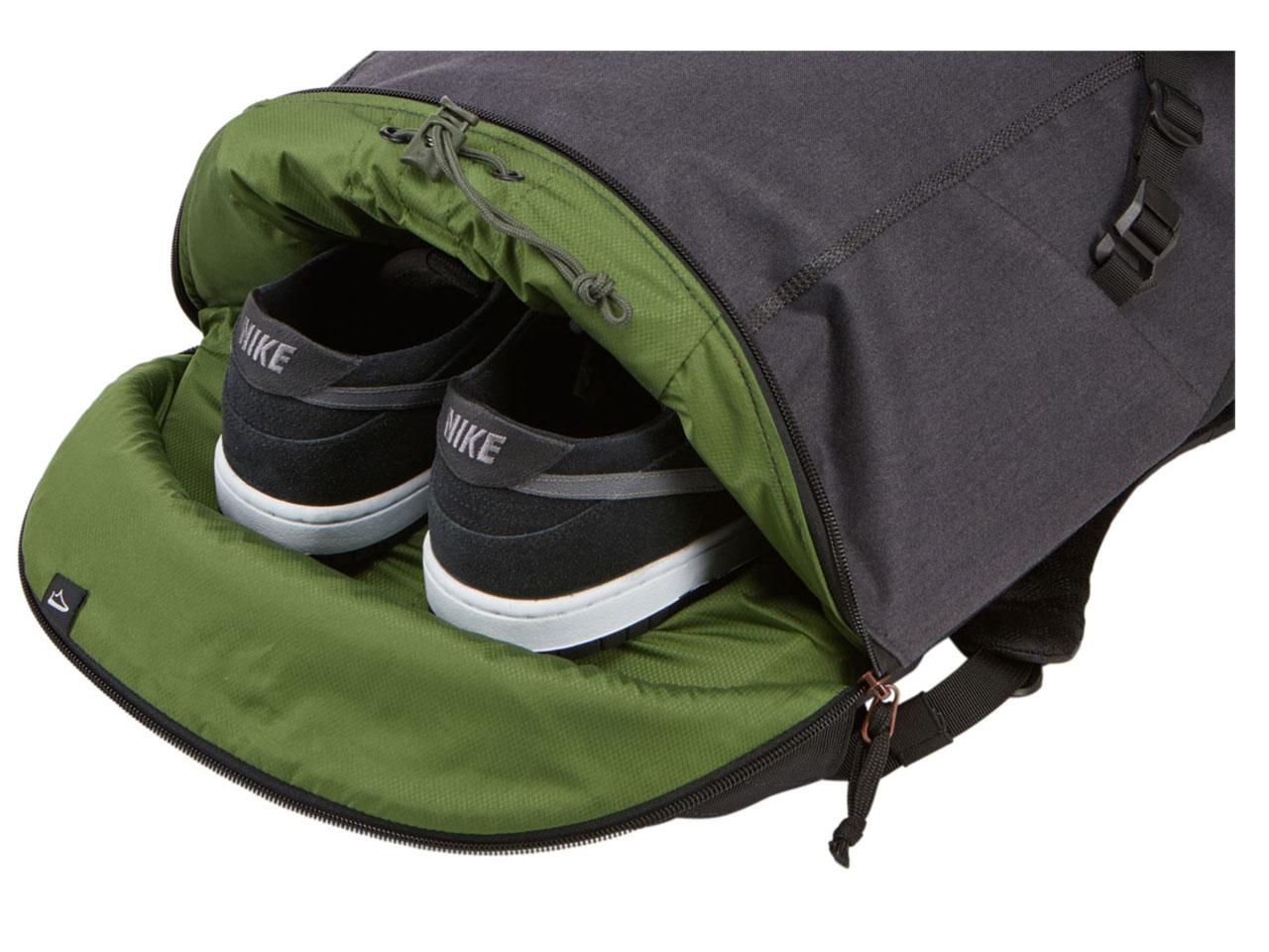 Uložte boty do samostatní elastické kapsy, která je přístupná z vnější strany batohu - Pro více místa kapsu srolujte, pokud ji právě nepoužíváte