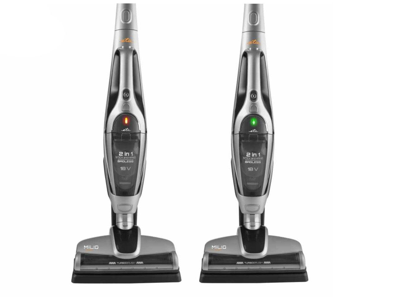ETA Milio jsou 2 vysavače v 1. Můžete jej použít jako klasický tyčový vysavač nebo jako vysavač do ruky pro menší plochy a rychlejší manipulaci. Má 18 V Li-ion baterii, která udrží vysavač v provozu až 25 minut. Součástí vysavače je také držák s integrovaným nabíjecím systémem, který dobije akumulátor přibližně za 4 hodiny. Dobu nabíjení, úplného nabytí i provozu vysavače zobrazuje světelná signalizace.