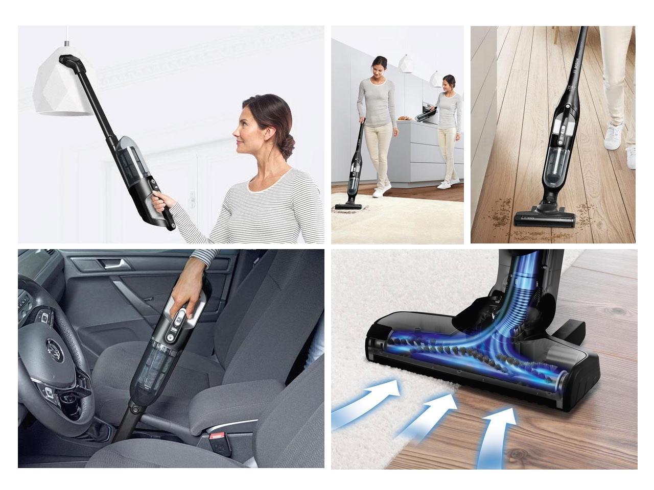 Vysavač můžete používat buď jako tyčový, nebo jako ruční. Díky tomu jednoduše dosáhnete na prach a nečistoty v jakémkoliv koutě. Součástí příslušenství je speciální kartáč 2 v 1 na nábytek a čalounění a vysouvací hubice na štěrbiny. Snadno si poradí jak s tvrdými podlahami, tak i s kobercem s vysokým vlasem. Ruční vysavač poté oceníte při vysávání sedačky, nebo třeba potahů v autě.