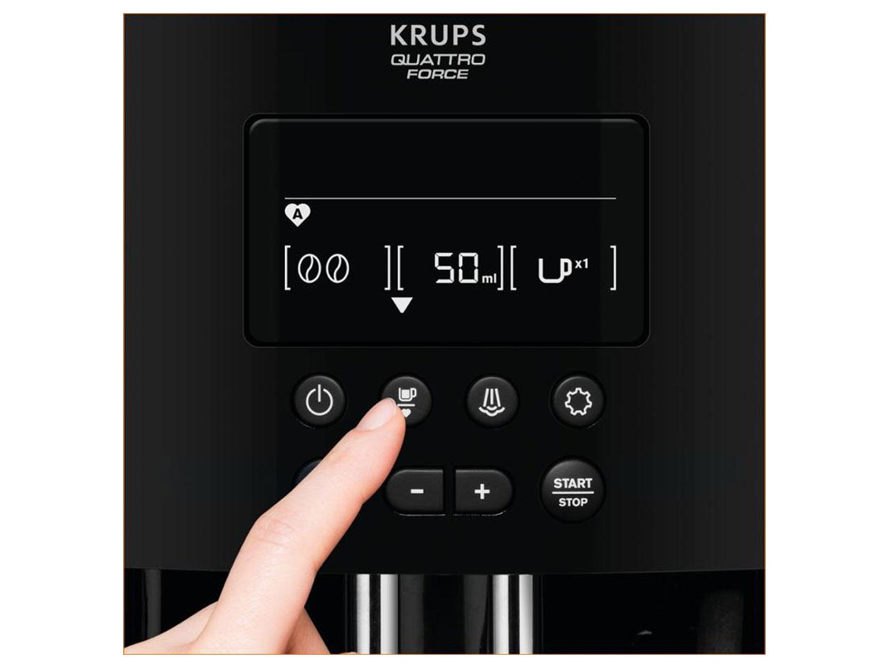 Milovníci lahodné kávy si rádi dopřejí pravé espresso s domácím automatickým kávovarem. Jeho příprava je v automatickém přístroji Krups Arabica vždy snadná a rychlá s využitím tlaku 15 barů. Kávovar s mlýnkem je kompaktní a praktický, nabízí intuitivní funkce ve spojení s moderními technologiemi. Se silným výkonem 1 450 W bude výsledkem vždy vynikající espresso s plnou chutí a výrazným aroma. K dispozici jsou 3 úrovně teploty a 3 stupně mletí kávy v kovovém mlýnku s objemem 260 g. Plně automatický kávovar současně připraví 2 šálky kávy nebo 1 šálek kávy s mléčnou pěnou. Množství mleté kávy si zvolíte od 6 do 9 g. Veškeré nastavení uložíte do paměťového režimu a kdykoliv opět využijete – nastavené funkce uvidíte na extra velkém LCD displeji.