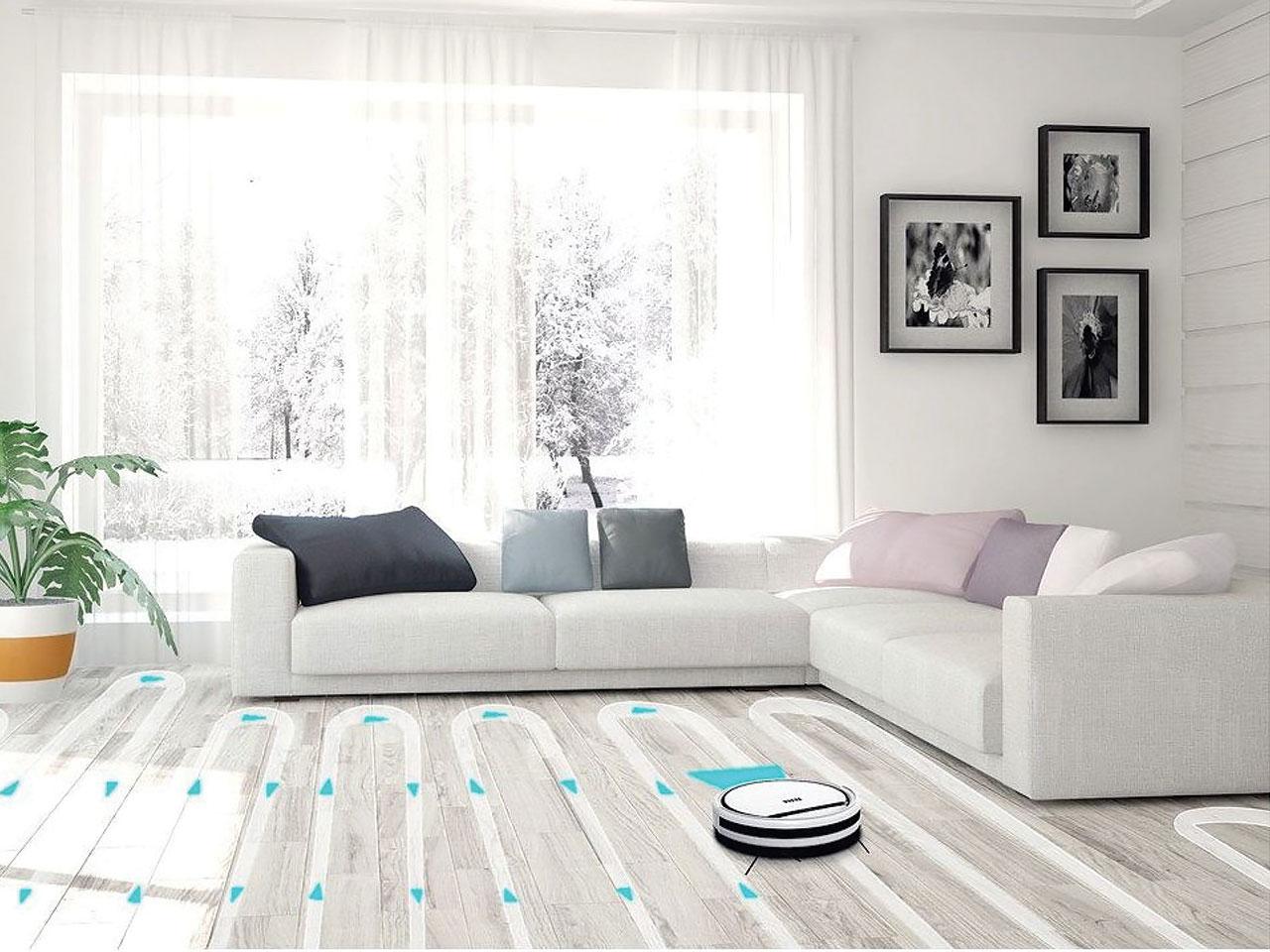Nový model je navíc vybaven moderní gyroskopickou navigací s pamětí a podporuje virtuální zeď. Úklid vašeho domu se stane zábavnou hrou a vy si ušetříte práci a čas. Robotický vysavač bude vaši domácnost sám uklízet, pohybuje se systematicky po podlaze místnosti a uklízí bez jakékoli pomoci. Snadno přejíždí nízké přechodové lišty a je vybaven množstvím snímačů. Po dokončení úklidu sám vyhledá nabíjecí základnu a začne se nabíjet.