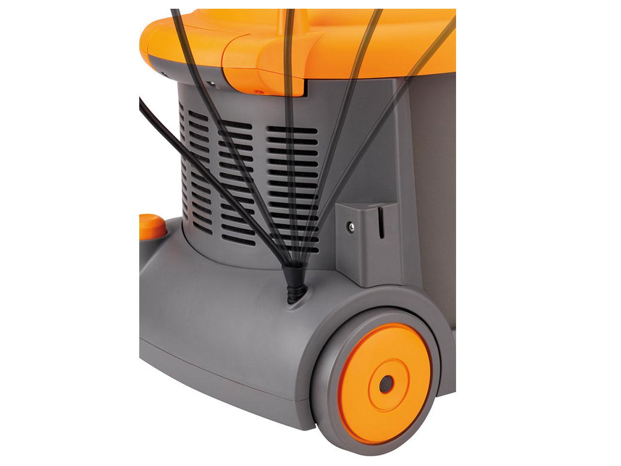 Prach a další nečistoty jdou přes ochranný vstupní motorový mikrofiltr, kde se oddělí od proudu vzduchu a zamíří do objemného textilního prachového sáčku. Ten disponuje velkou kapacitou 18 litrů, proto jej nemusíte měnit dlouhé týdny až měsíce, samozřejmě v závislosti na tom, jaké prostředí a jak často uklízíte. Měkčená pojezdová kolečka jsou šetrná ke všem povrchům, nehrozí proto jejich poškrábání. Praktická parkovací poloha vám usnadní skladování zařízení v době jeho nepoužívání.