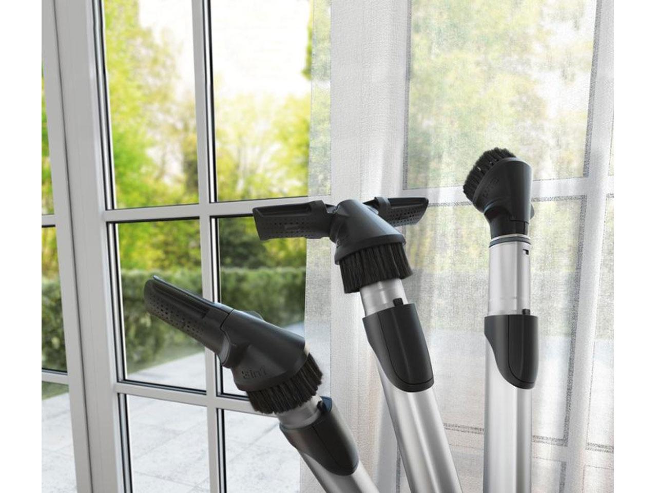 Pohovky, rohy, obtížně přístupné prostory. S naší multifunkční hubicí FlowMotion™ 3 v 1 jste dobře vybaveni na cokoli. Kartáč, štěrbinovou hubici i hubici na čalounění máte vždy při ruce a můžete okamžitě použít. Až budete hotovi, stačí je uložit zpátky do vysavače.