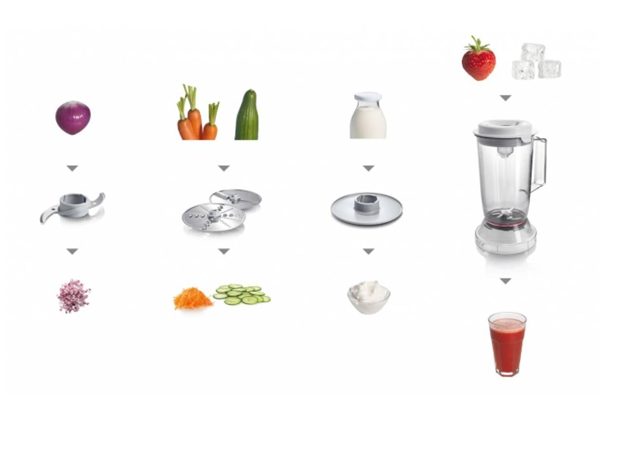 Více než 30 funkcí: sekání, strouhání, mixování a mnoho dalších - díky příslušenství jako je nůž MultiLevel6 a víceúčelový nerezový nůž.