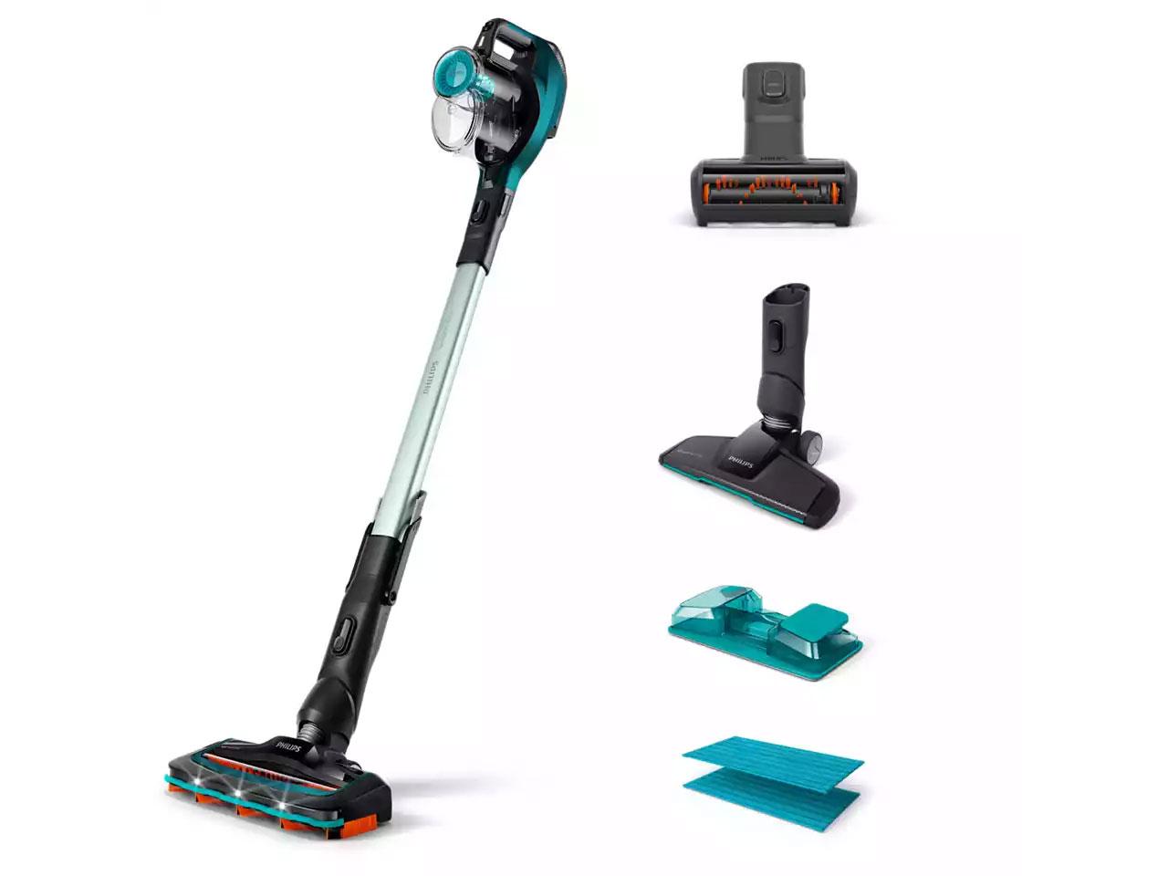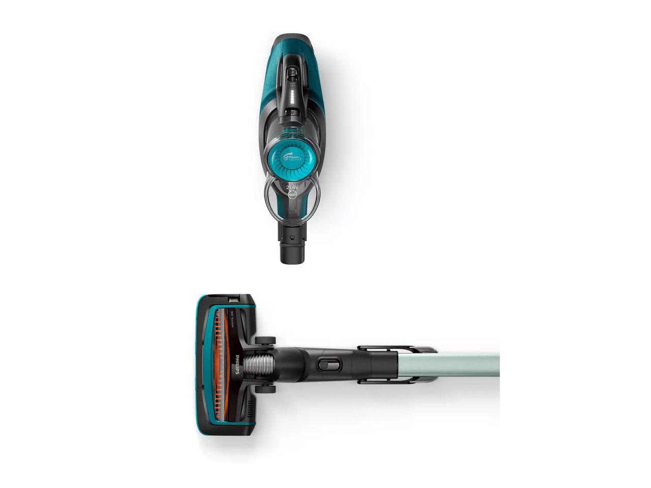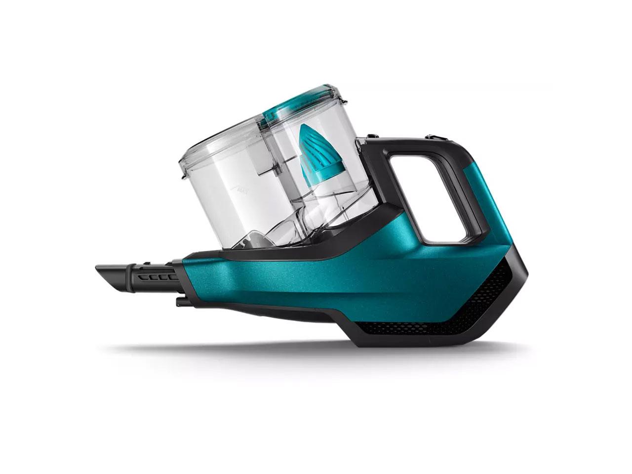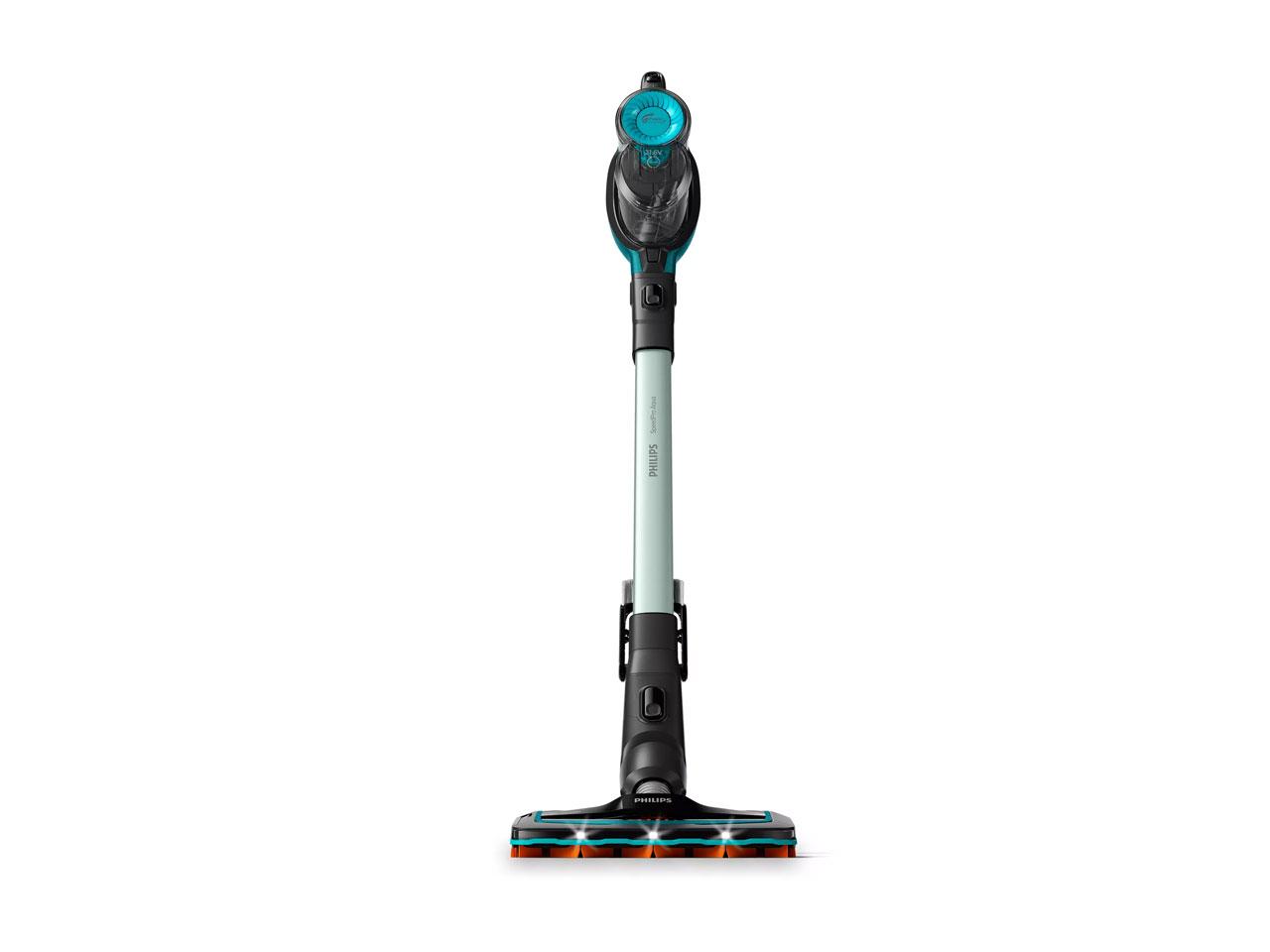 Příslušenství se používá snadno a jedním stiskem. Díky odnímatelné přenosné jednotce je SpeedPro dvěma zařízeními v jednom. Kartáčový nástavec je integrovaný do trubice, takže je vždy po ruce pro čištění stropů a polic.