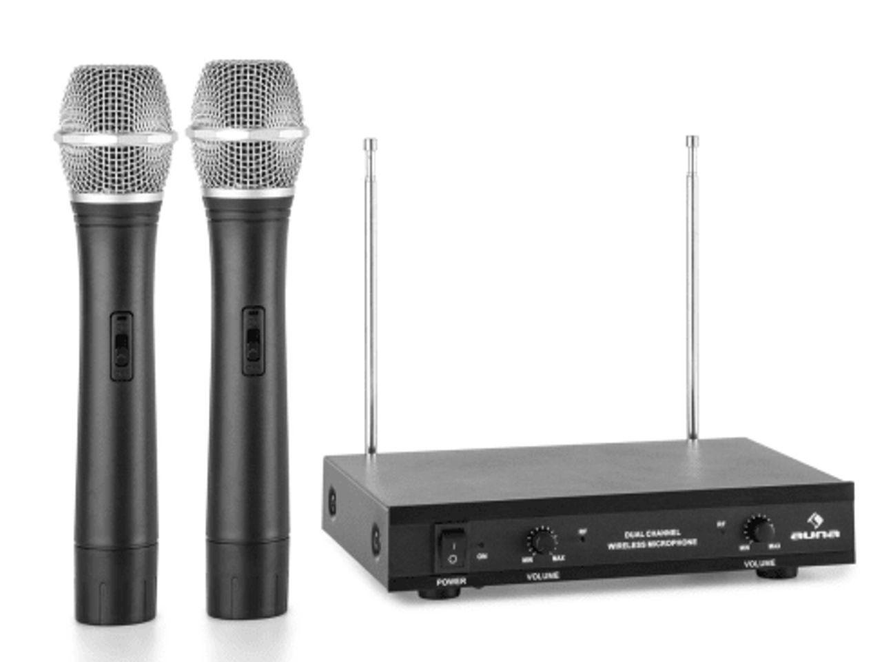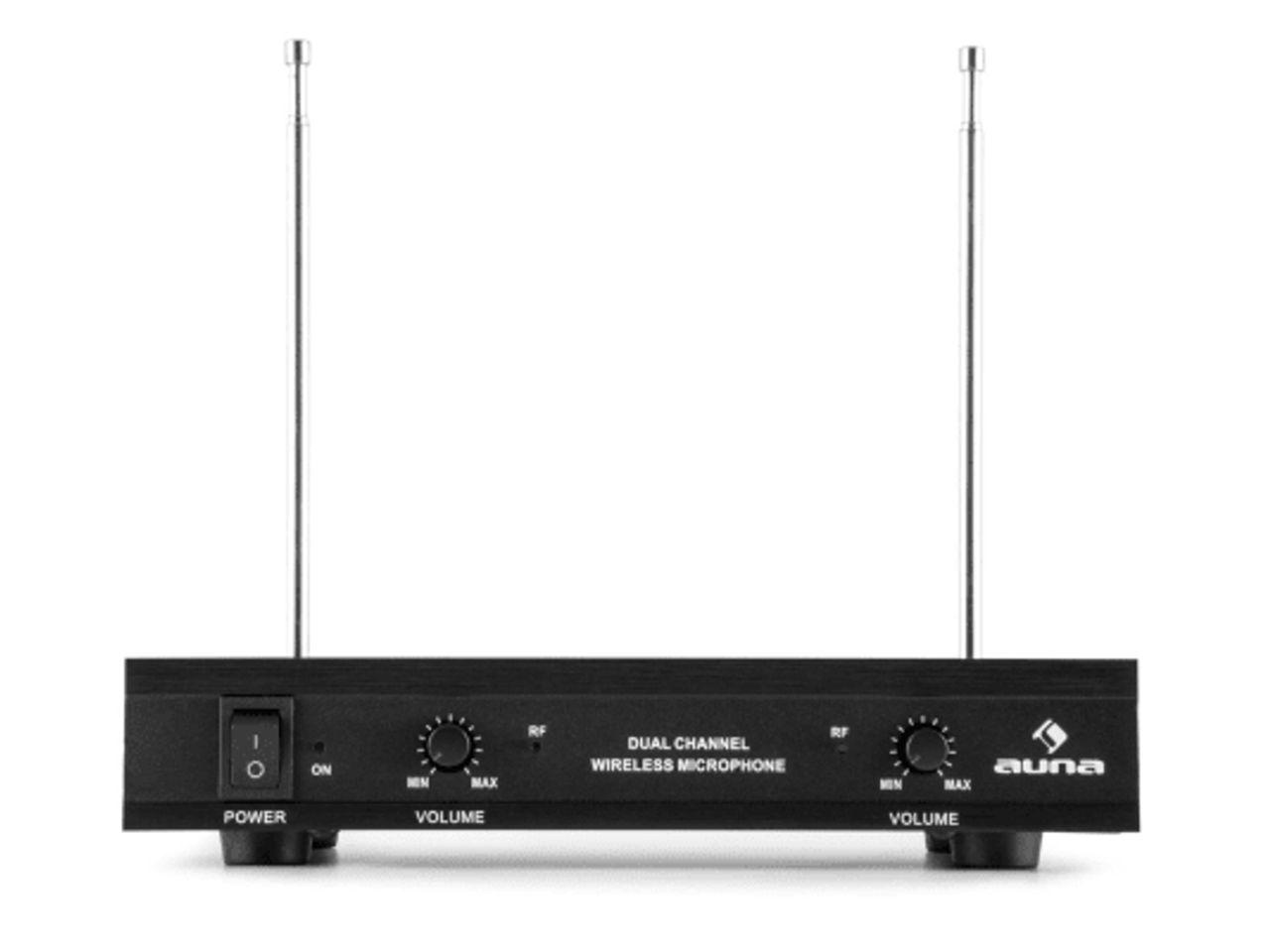 Bezdrátový systém s sebou přináší dva dynamické ruční mikrofony, které v celém rozsahu zachytí akustický repertoár mistrových zpěváků, řečníků a tržních obchodníků a zlepšují tak performativní dojem. Díky VHF frekvenčnímu pásmu dosahuje Auna VHF-2-H systém akusticky i do rozsáhlejších oblastí s poloměrem až do 100 metrů.