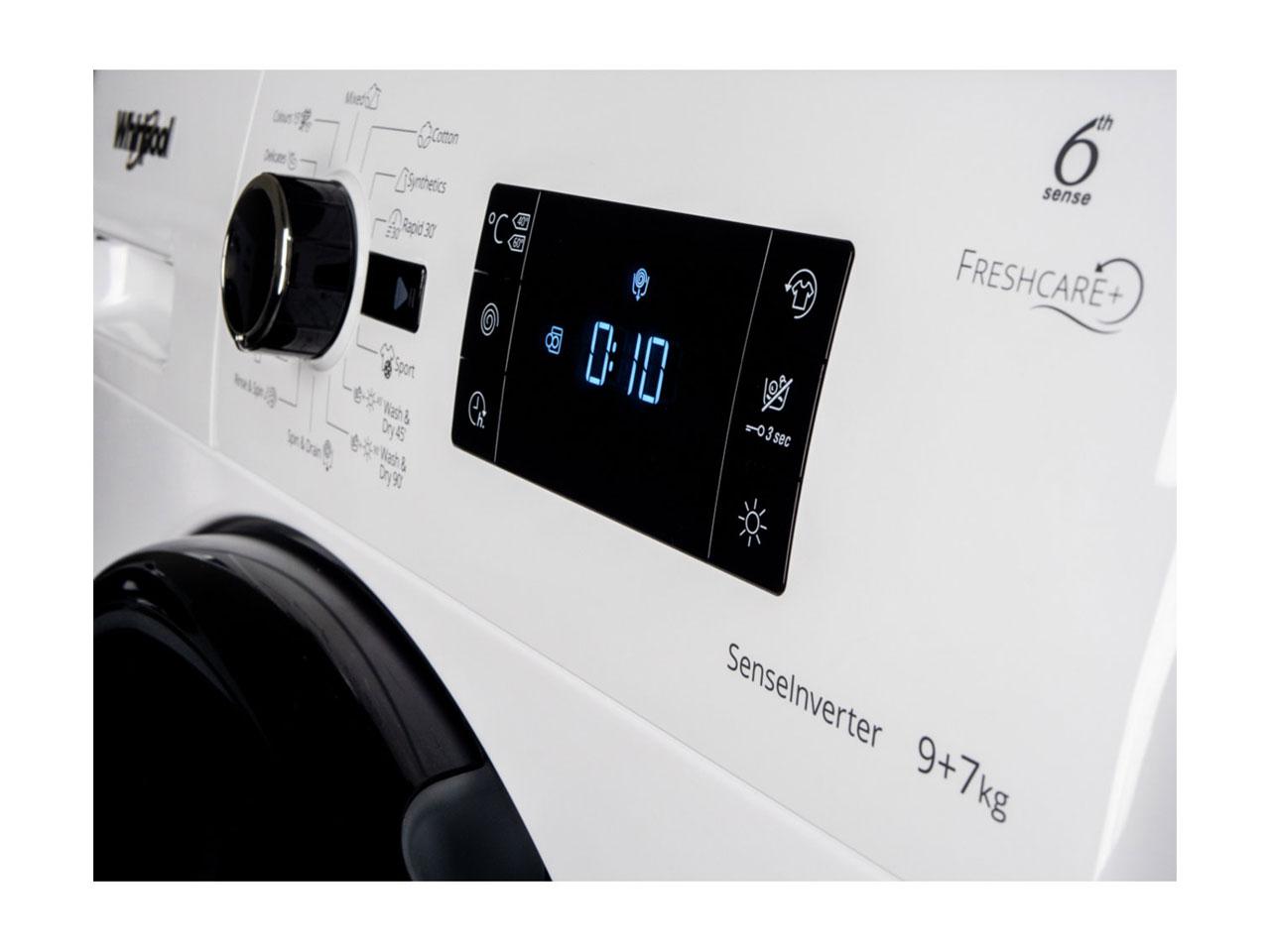 Whirlpool FWDG97168B EU představuje kombinovanou pračku se sušičkou v energetické třídě A s kapacitou 9 kg praní a 7 kg sušení. Nabízí přehledný displej se zobrazením funkcí, teploty a času. Je vybavena technologií 6.smysl, která automaticky upravuje prací a sušící cyklus, aby uspořila energii, čas a vodu. Celý popis