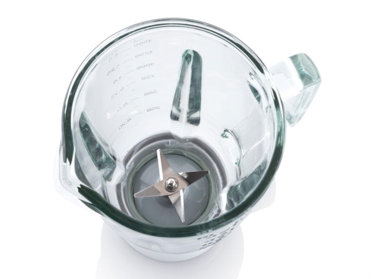 Maximální objem mixéru je 1,5 litru a je vhodný pro nápoje, koktejly, smoothie, omáčky, polévky, pomazánky i přesnídávky díky nerezovým mixovacím nožům. Skleněná nádoba nepohlcuje pachy a barvy mixovaných potravin, což je jedna z největších výhod. Další jedinečnou výhodou je možnost v mixéru zpracovávat také horké tekutiny až do teploty 80 °C, což umožňuje bez obav připravovat své oblíbené omáčky a polévky.