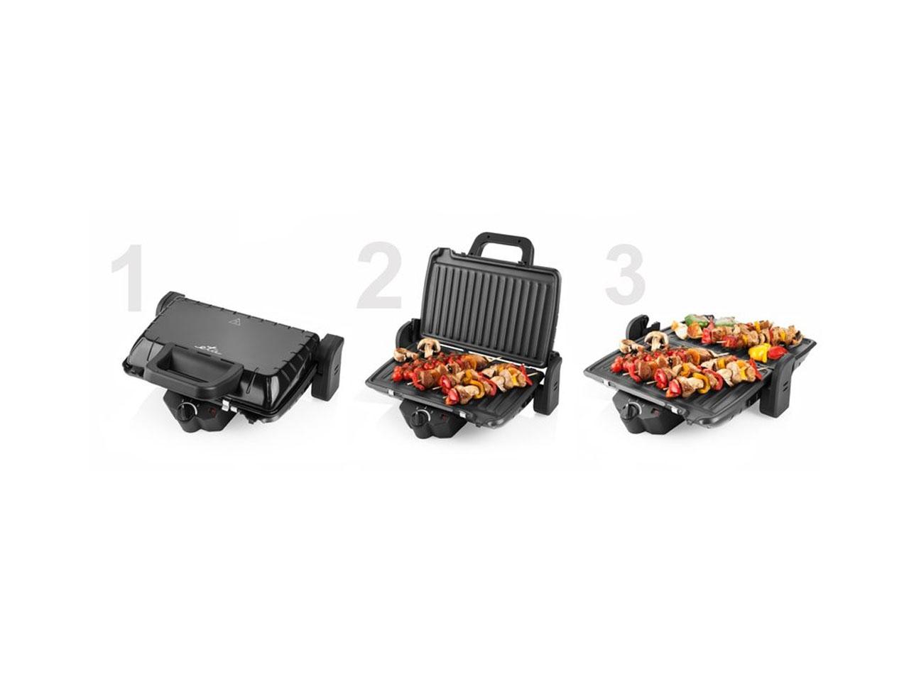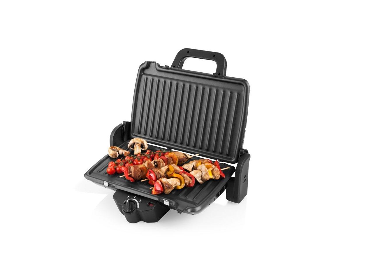 Elektrický kontaktní gril ETA Livero se 3 grilovacími polohami pro grilování masa i zapékání toustů. Celý popis