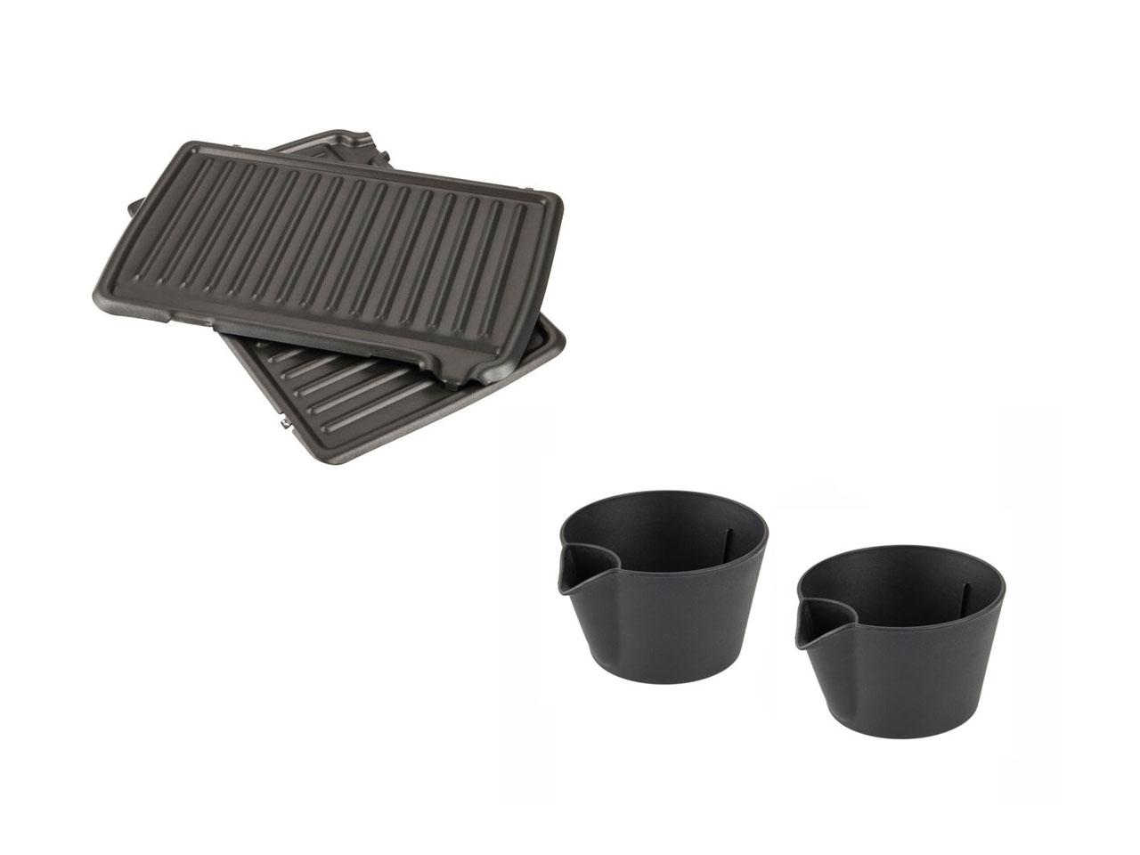 Dvě grilovací desky o rozměrech 225 x 335 mm mají antiadhezní povrch, díky němuž se vám potraviny nepřipečou. Nepřilnavé desky se navíc lépe omývají, a díky tomu, že jsou obě vyjímatelné, je můžete mýt i v myčce na nádobí. Ke každé desce patří také jedna odkapní miska pro zachycení tuku a šťávy.