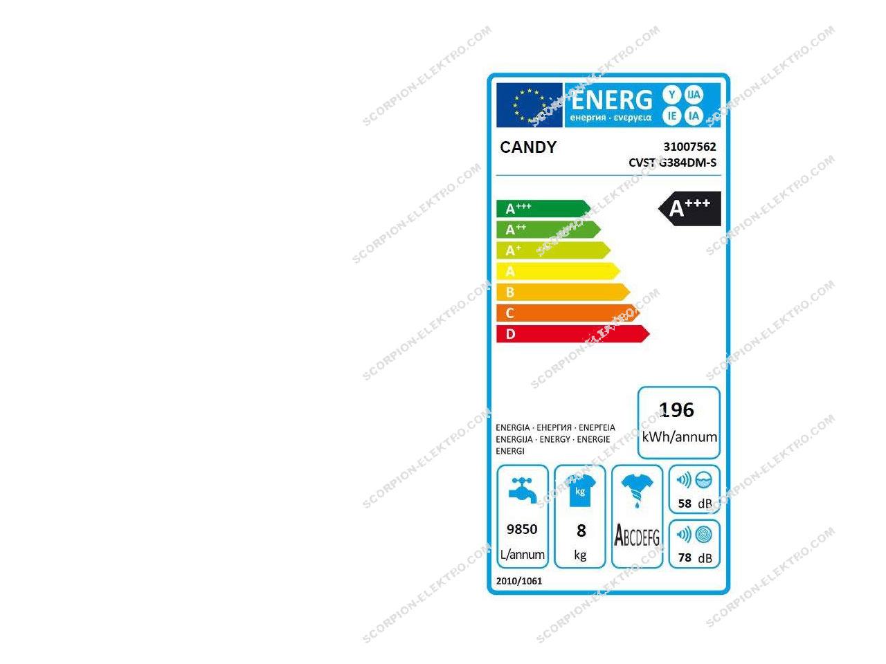 Pračka s vrchním plněním CANDY CVST G384DM-S v energetické třídě A+++ s kapacitou praní 8 kg a maximálním počtem otáček 1400 ot./min. Celý popis