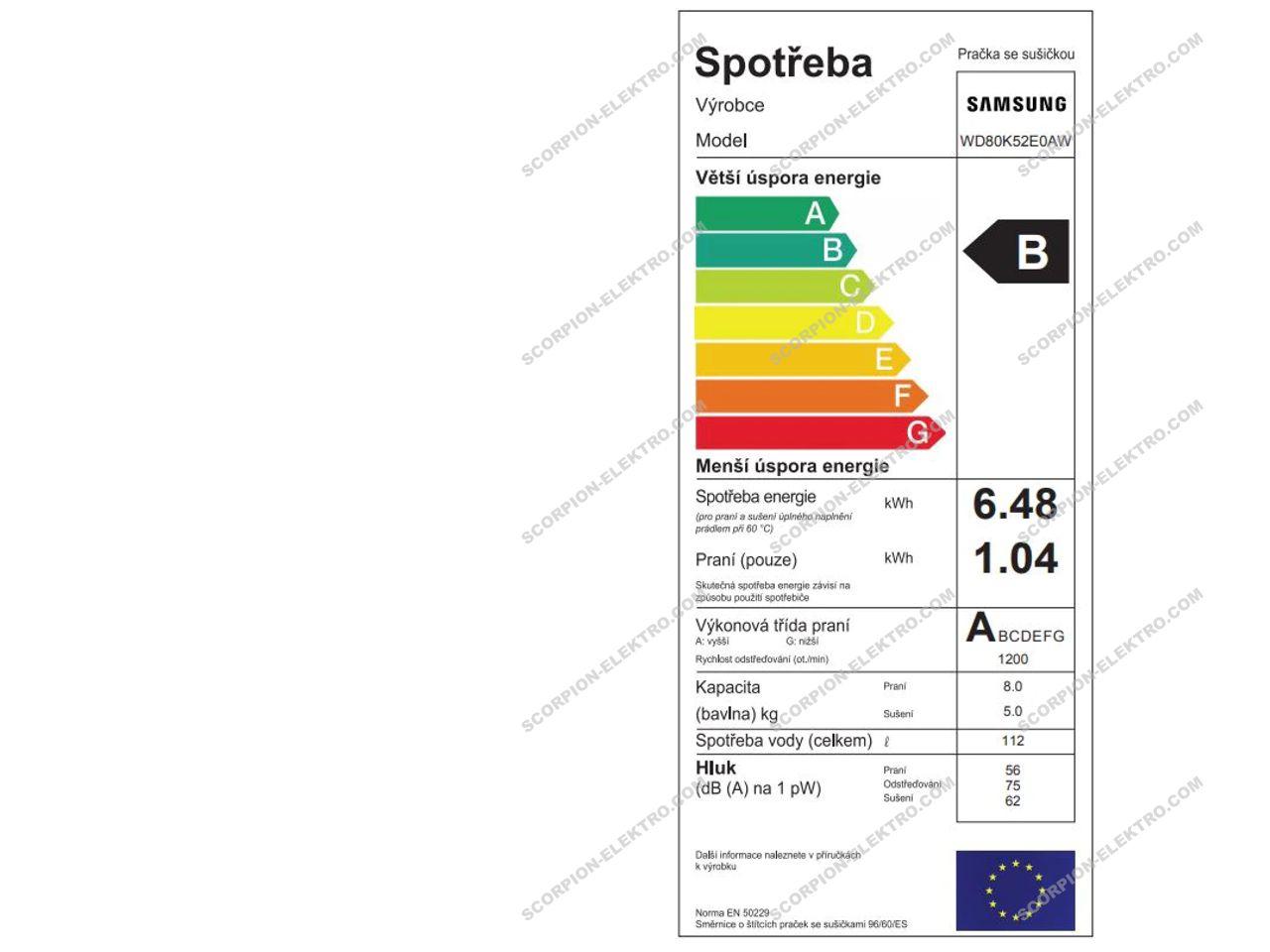 Volně stojící pračka se sušičkou v energetické třídě B pojme 8 kg prádla při praní a 5 kg při sušení. Pračka Samsung WD80K52E0AW/LE zaručí špičkový výkon díky modernímu invertorovému motoru, na který se navíc vztahuje 10 let záruky. Díky funkci Bubble Soak se snadno a bez námahy zbavíte i odolných skvrn na oblečení. Celý popis
