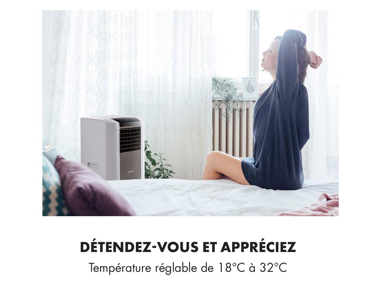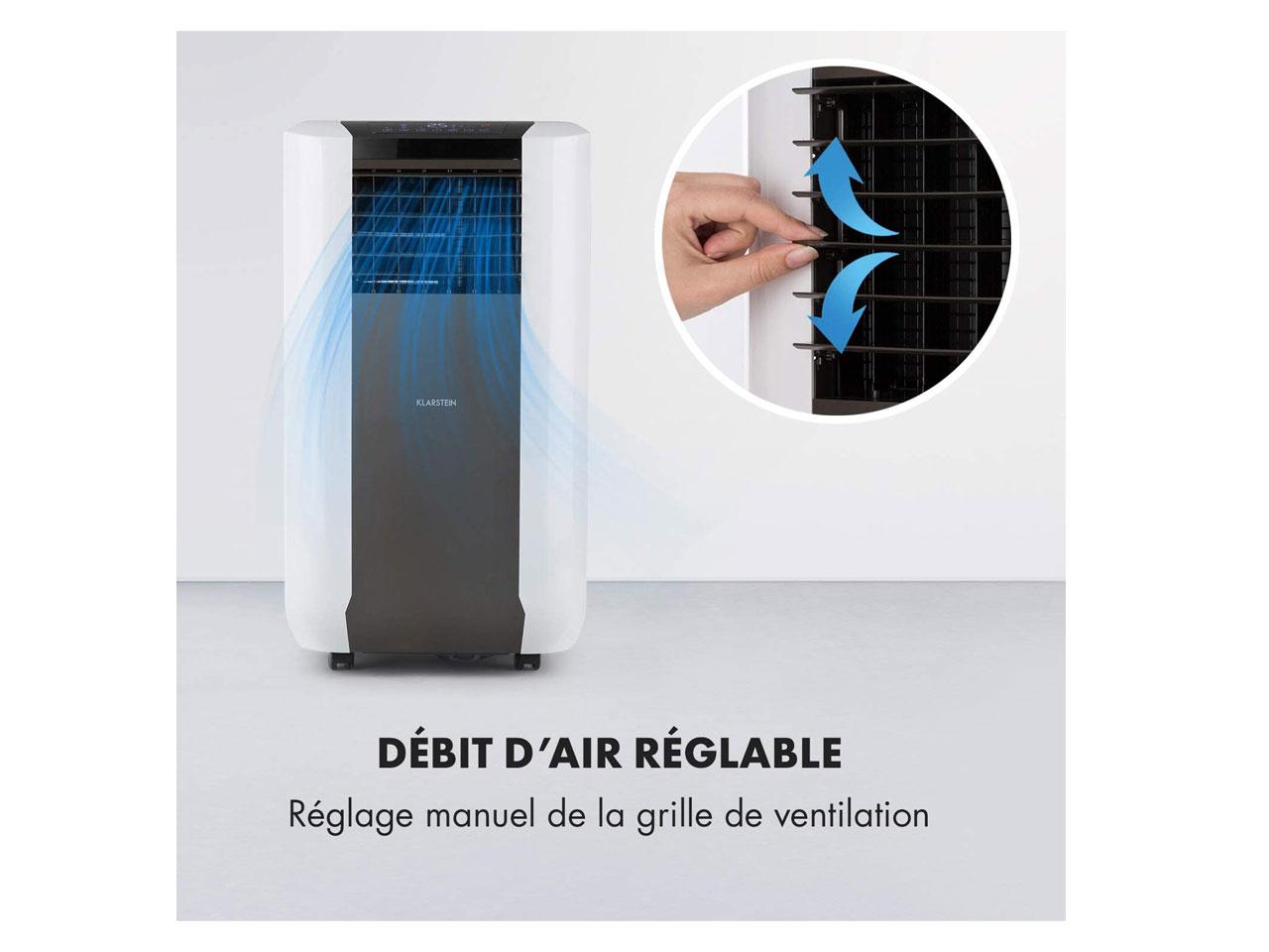 Díky tomu bez problémů vychladí i větší kanceláře nebo jiné velké prostory. Navzdory vysokému výkonu se však vyznačuje i výjimečnou energetickou bilancí 2,6 EER v energetické třídě A. Také nabízí i filtr s aktivním uhlím. Čtyři provozní režimy (Auto, Cooling, Dry - Odvlhčování, Fan) garantují vhodné nastavení klimatu v aktuálních podmínkách. Rovněž máte na výběr tři stupně intenzity vánku. Užitečné je i automatické otáčení (oscilace) a nastavení teploty v rozmezí 18-32 °C v chladicím režimu. Dotykový displej zajišťuje jednoduché ovládání přístroje, stejně praktické je i dálkové ovládání. Klimatizace obsahuje nádržku na vodu, která zvyšuje efektivitu chlazení. Samozřejmostí je i nastavitelný časovač do 24 hodin. Takový výkon se nevyskytuje často: mobilní klimatizace Klarstein Max Breeze zabezpečuje i během horkých částech roku vždy příjemné teploty, přesvědčuje především svým výkonem, energetickou efektivností a různými stupni chlazení a ventilace. Vezměte prosím na vědomí, že na zajištění maximální efektivity klimatizace ji doporučujeme používat s těsněním na okno.