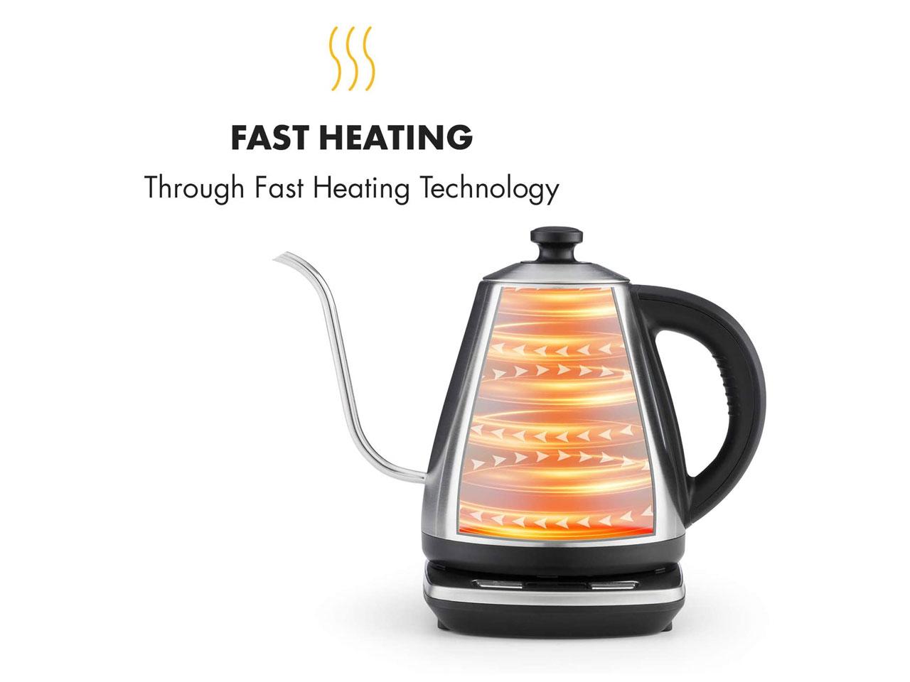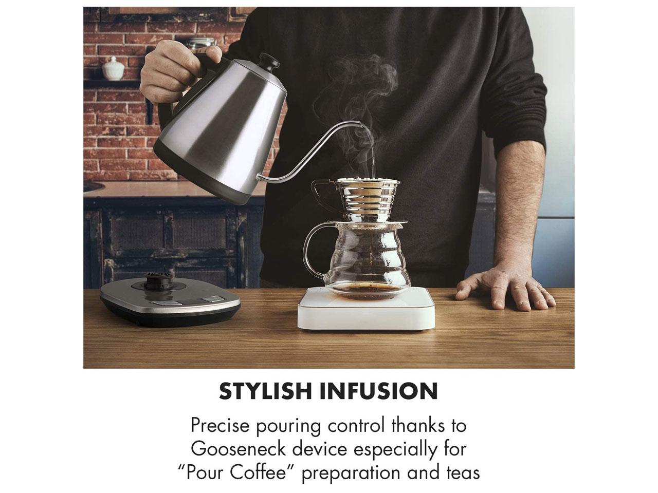 Praktické Gooseneck zařízení, které umožňuje precizní kontrolu lití, která je potřebná pro lahodné čaje a kávy