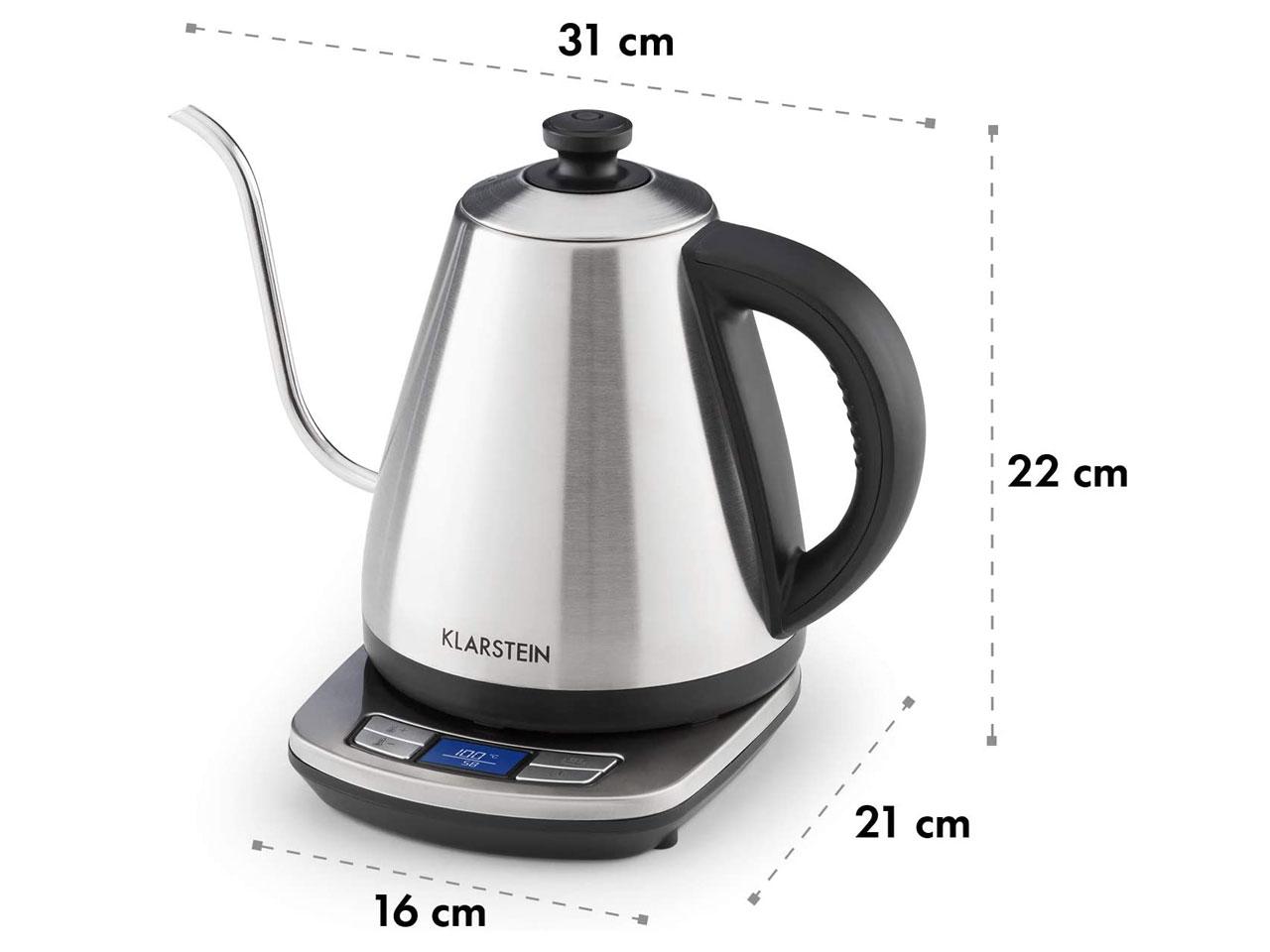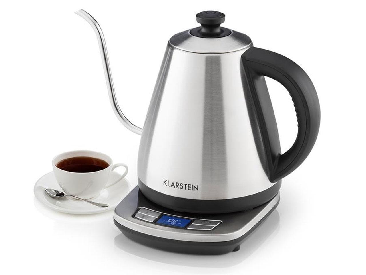 Toto estetické zařízení ovládáte intuitivně pomocí čtyř tlačítek (včetně tlačítka ON/OFF), které jsou seřazeny kolem digitálního displeje. Mimořádným potěšením pro oči je praktické Gooseneck zařízení, které umožňuje precizní kontrolu lití, která je potřebná pro lahodné čaje a kávy. Díky na stupeň přesné teplotní kontrole mezi 40 °C a 100 °C můžete nastavit teplotu varu v 1 °C nebo 5 °C krocích - tak máte k dispozici vždy přesnou teplotu vody. Jako zvláště užitečná se ukázala funkce udržení teploty, která po svaření udržuje požadovanou teplotu vody v teplotním rozmezí 40 °C až 95 °C po dobu 30 minut. Klarstein Garcon Pro rychlovarná konvice se díky svým přednostem jako digitální bytové zařízení vysoké kvality, jako estetický společník a všestranné zařízení velmi rychle spřátelí s každým kuchyňským zařízením.